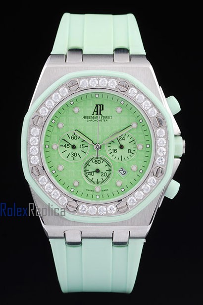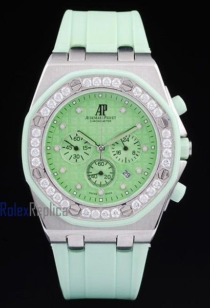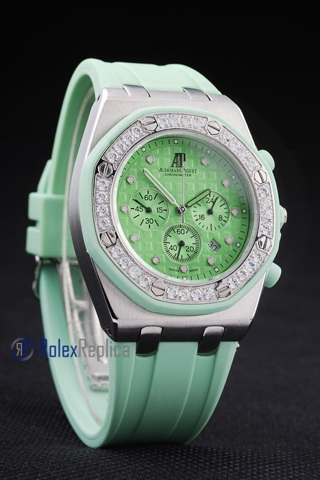 audemars piguet replica chrono offshore lady green dial strip rubber imitazione copia
