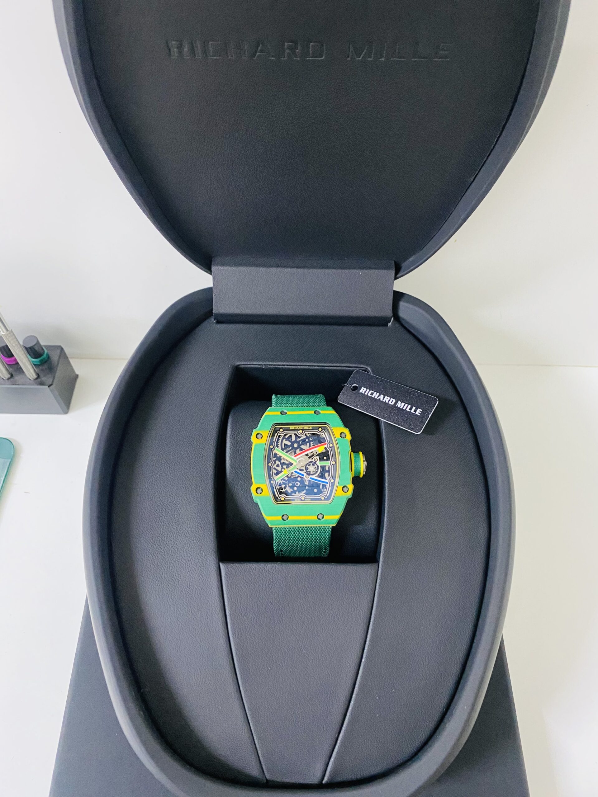 - Lancette trattate al chromalight per consentire luminescenza nelle ore notturne, il chromalight utilizzato è lo stesso che utilizza la Richard Mille, quindi la qualità e la durata della luce è identica a quella originale