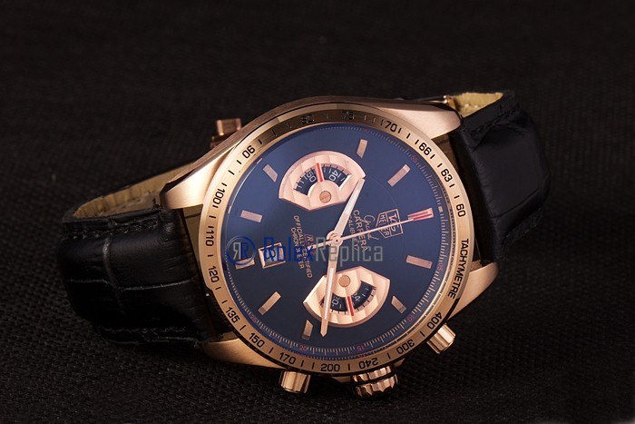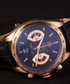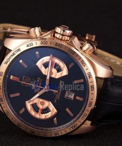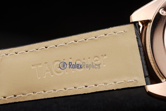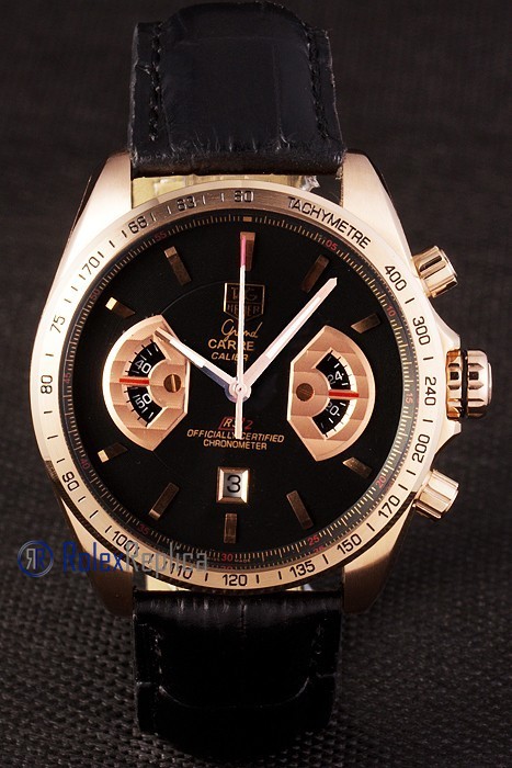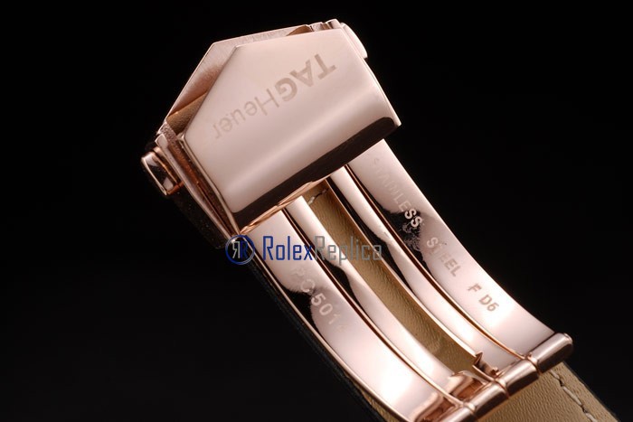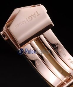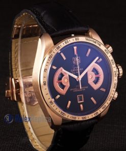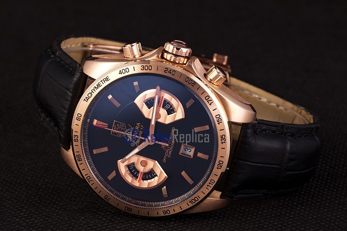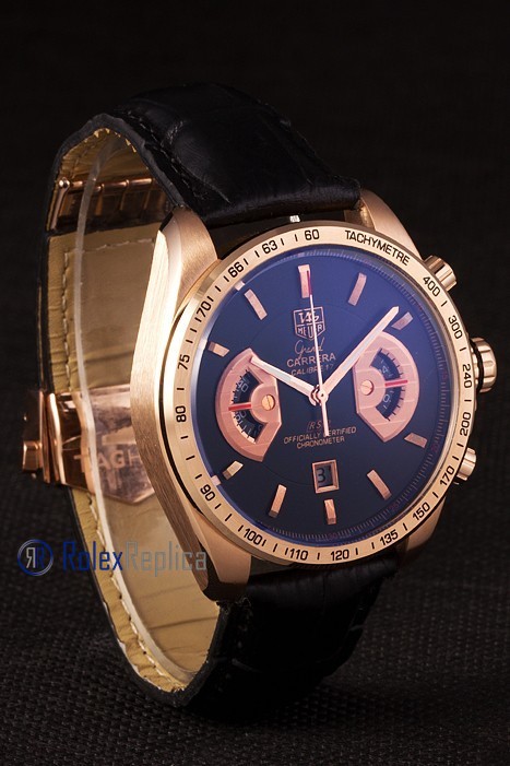 Tag-heuer replica carrera calibre 17 chrono rose gold black dial strip leather imitazione copia